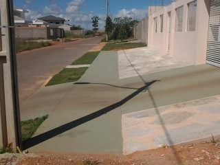 c) Faixa de Acesso ao Lote: O restante da calçada junto ao muro, poderá ser revestido ou utilizado para grama ou plantas. Nesta faixa é que deve ser feito a elevação ou rebaixamento para o veículo acessar o lote. Caso ainda fique muito íngreme, a rampa de acesso deverá ser complementada no interior do lote.